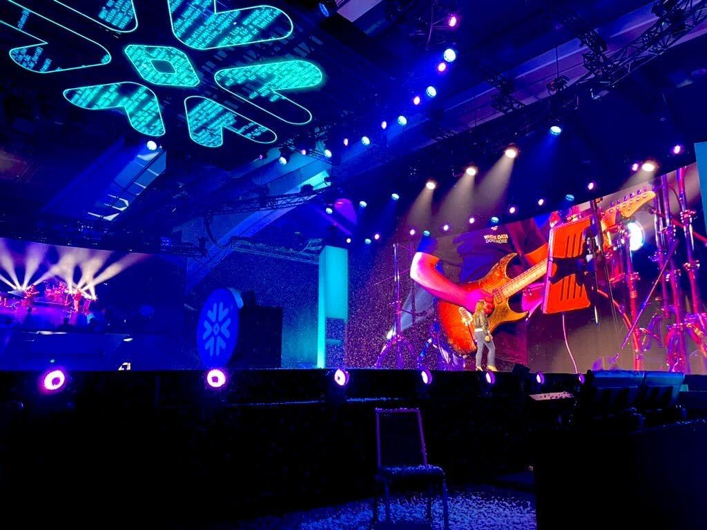 ※Keynote会場の様子。生バンドによる臨場感溢れる演奏や煌びやかな光と音の演出の中でカウントダウンが行われ、今年も多くの新機能や活用事例が発表されました