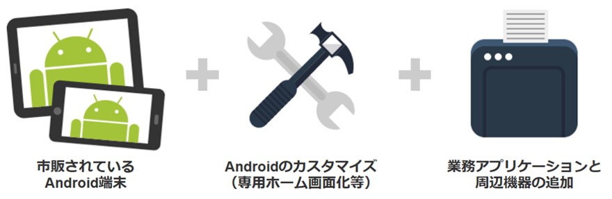 例えば、在庫管理や物流管理の端末、決済端末として利用されるケースがあります。在庫管理ではバーコードリーダーの付いたハンディーターミナルなどの専用の端末が使われているイメージがありますが、最近ではモバイル端末を専用化して利用している事例があります。バーコードリーダーなど必要な機能についても、外部機器と接続、連携することで実現できます。