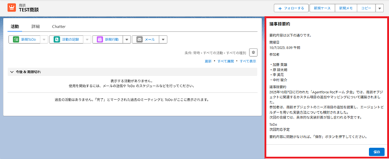 - Salesforceの商談オブジェクトに要約結果を保存
