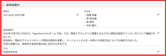 - 要約結果を商談オブジェクトに反映